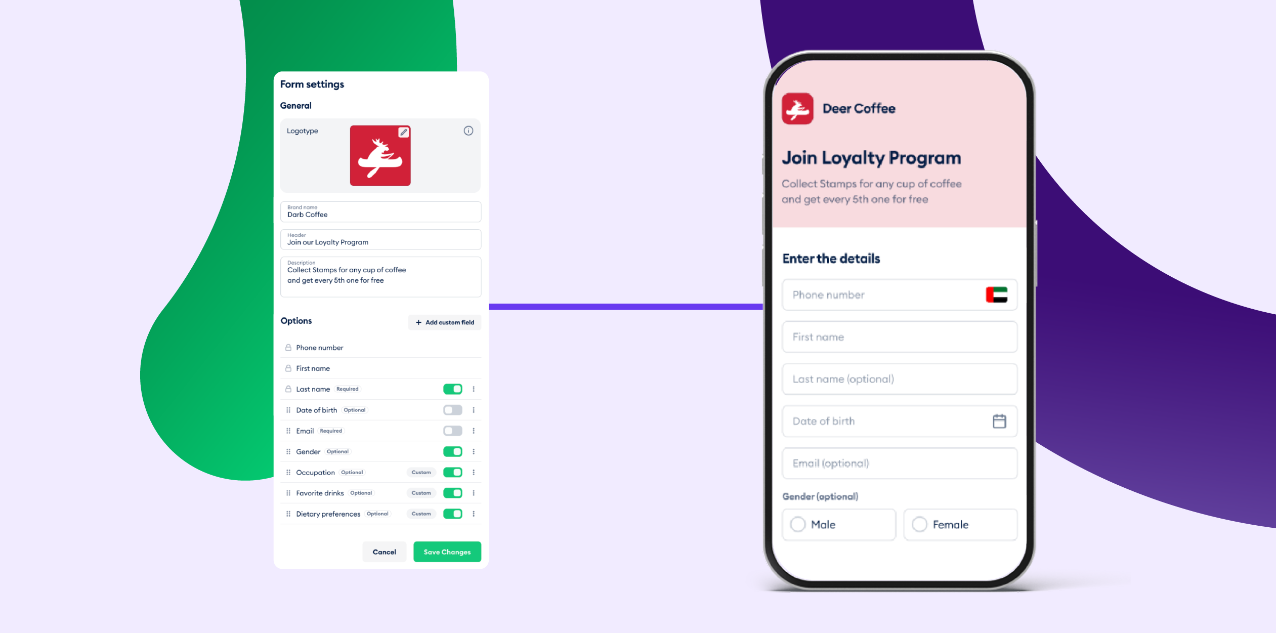 You can now fully customize the loyalty sign-up form. Collect the fields that actually matter to your business such as birthdays, emails, dietary preferences, favorite drinks, and more. Better data means better campaigns.