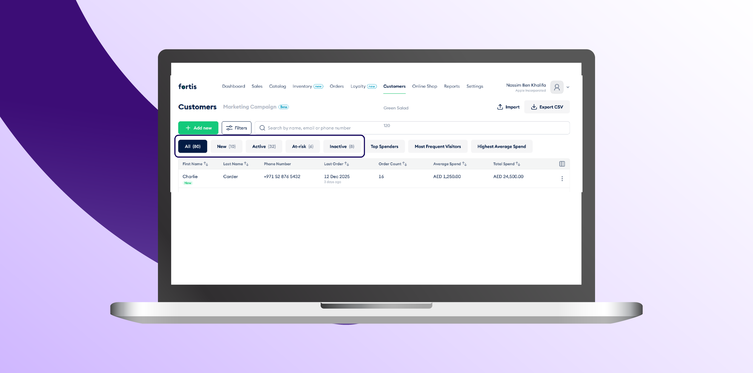 Automatically segment your customers into groups like New, Active, At-Risk, and Inactive. Plus, filter by Top Spenders, Most Frequent Visitors, and Highest Average Spend. Use the data you've been collecting to actually act on it.